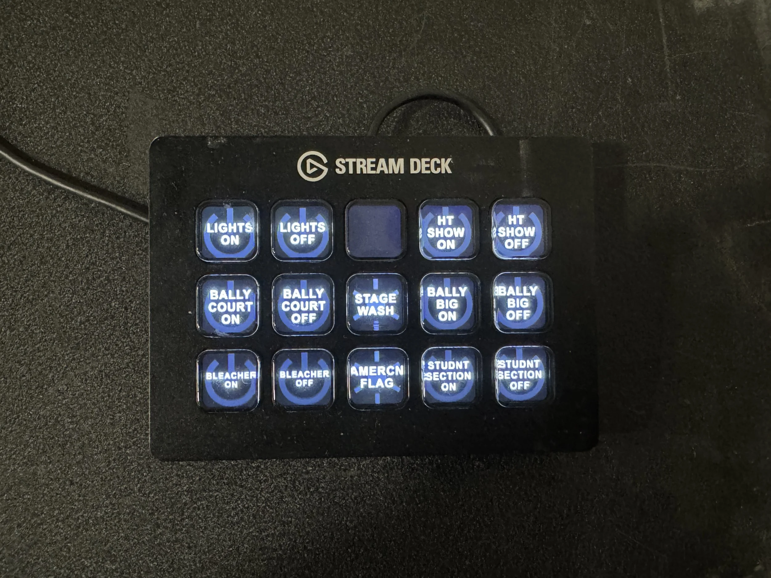Find the controller in the image below. We encourage you to just start pressing buttons to learn what each one does. We are aware some lights may not be as bright as the others. This is because they are left on most of the time. So please remember to make sure they are off before you leave. Thank you